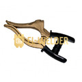 Специфічна конструкція губок дозволяє закріплювати клему на круглі і профільні труби. Міцна, потужна конструкція латунного корпусу забезпечує надійний контакт зі зварюваних виробом. За рахунок напівкруглої форми губок забезпечується стабільний контакт незалежно від розкриття губок. Хмарно лита латунна клема гарантує чистий перехід струму з робочої поверхні на зварювальний кабель.Дуже добре підходить для тривалого інтенсивного використання на високому зварювальному струмі. Максимальне розкриття губок - 3,80 см Максимальна глибина захоплення - 10,16 см Розкриття забезпечується потужною пружиною, що з'єднує верхню і нижню ручки. Пружина повністю ізольована.